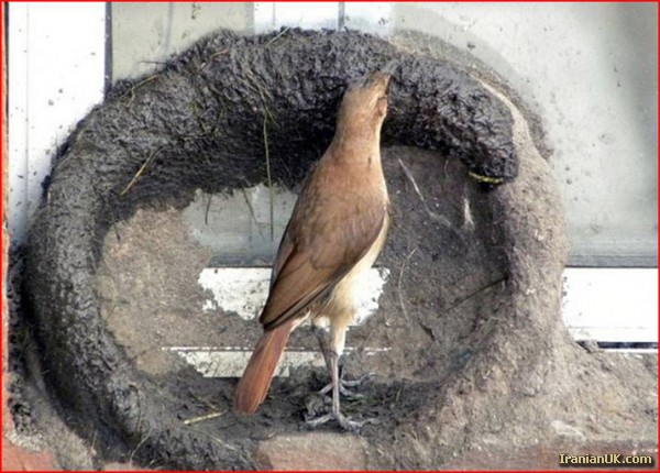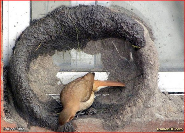 عجیبه. خیلی عجیبه!!!!!!!!! اولین بار هست می بینم پرنده ها لانه به این سبک درست می کنند ، منکه هر چی لانه از پرنده ها دیدم با شاخ و برگ درختان بوده / این پرنده اسمش چی هست و در کدوم منطقه زندگی می کنه؟؟؟