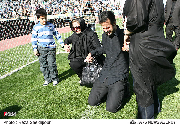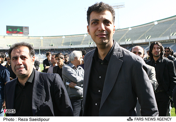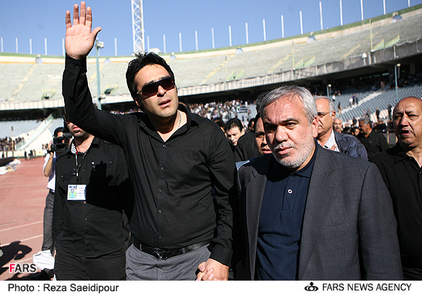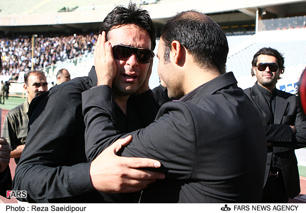 حضور علی کریمی و امیر حسین صادقی در مراسم تشییع پیکر ناصر حجازی در استادیوم آزادی