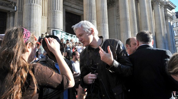 جولیان آسانژ، موسس ویکی لیکس هم در جمع معترضان حضور داشت