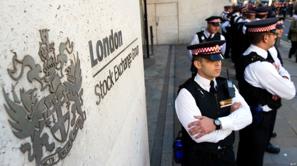 پلیس از ساختمان بازار بورس لندن حفاظت می‌کند