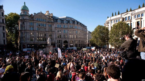 معترضان به "بی عدالتی و حرص" در نظام های مالی غرب در نقاط مختلف لندن تجمع کرده اند.