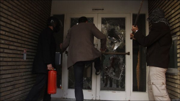 موقع اذان مغرب که شد فشارهای مردمی از بیرون سفارت بیشتر شد تا اینکه حدود 20 دقیقه بعد از اذان یک گروه حدود 1700-2000 نفری خود را به داخل سفارت رساندند و بعد از آن اتفاقاتی که داخل سفارت افتاد بیشتر شبیه به هرج و مرج بود.