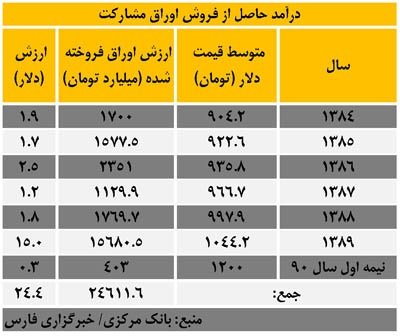 بر اساس آمارهای بانک مرکزی کل اوراق مشارکت منتشر شده توسط دولت ها طی سالهای 73 تا 83 معادل5.3هزار میلیارد تومان بوده است در حالی که طی سالهای 84 تا 89 در دولت های نهم و دهم معادل 24 هزار میلیارد تومان اوراق مشارکت منتشر شده است. این میزان معادل 24 میلیارد دلار است که یکی دیگر از اقلام مهم درآمدی دولت های نهم و دهم محسوب می شود و البته این منبع درآمدی یک تفاوت عمده با سه مورد بالا دارد. اوراق مشارکت در واقع نوعی اوراق قرضه محسوب می شود و با توجه به اینکه عمده این اوراق توسط دولت تضمین شده می توان گفت که این اوراق مشارکت همان اوراق قرضه ملی محسوب می شوند.