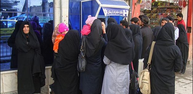 صف مردم درمقابل خودپرداز بانک برای دریافت یارانه نقدی