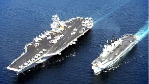 ناو هواپیمابر استنیس (چپ) در کنار یک ناو هواپیمابر بریتانیایی