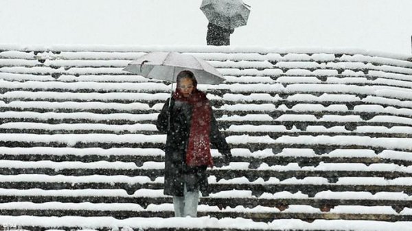 درختان زیر بار برف و شهروندان زیر چتر. با این برف شاید کمی از این آلودگی هوا کاسته شود.