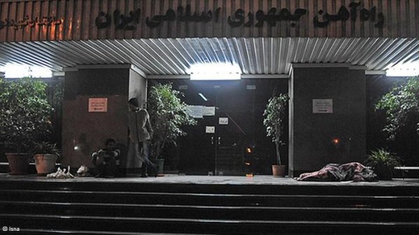 افراد بی سرپناه در ورودی ایستگاه راه آهن تهران جایی خشک برای خوابیدن یافتهاند.