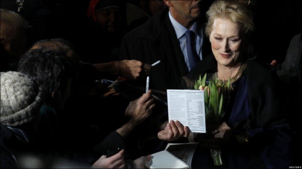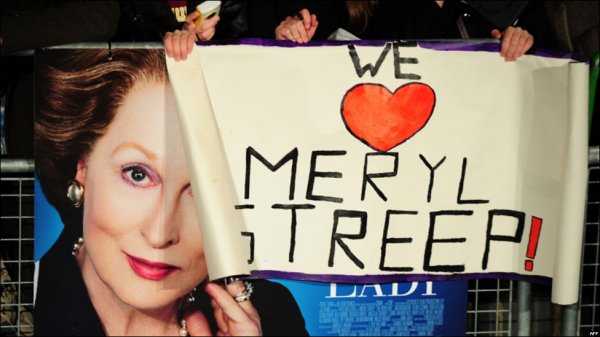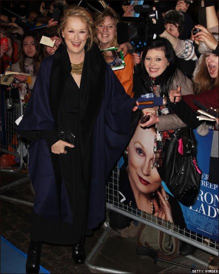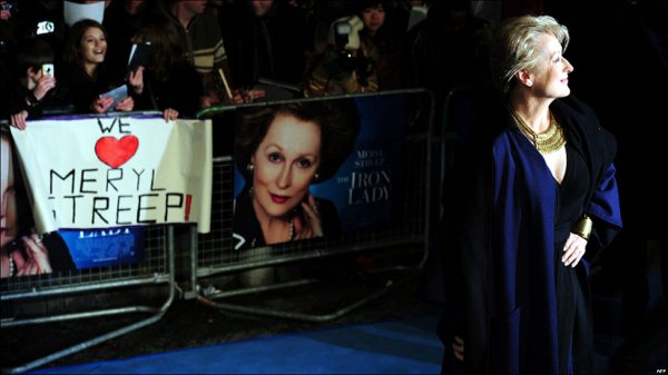 وجود باد و باران علاقمندان فراوانی برای دیدن مریل استریپ و سایر عوامل فیلم در مراسم نخستین اکران "زن آهنین" در اروپا جمع شده بودند.