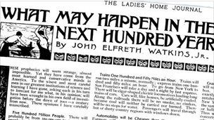 در دسامبر سال ۱۹۰۰ در آغاز قرن بیستم، جان الفرت واتکینز در صفحه ۸ یک مجله آمریکایی مربوط به زنان به نام لیدیز هوم ژورنال (Ladies Home Journal) یادداشتی نوشت با عنوان "آنچه در صدسال آینده ممکن است اتفاق بیفتد."