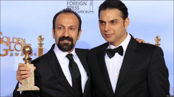 برای دریافت جایزه بهترین فیلم خارجی زبان، اصغر فرهادی و پیمان معادی، بازیگر نقش اول فیلم جدایی نادر از سیمین روی صحنه رفتند.