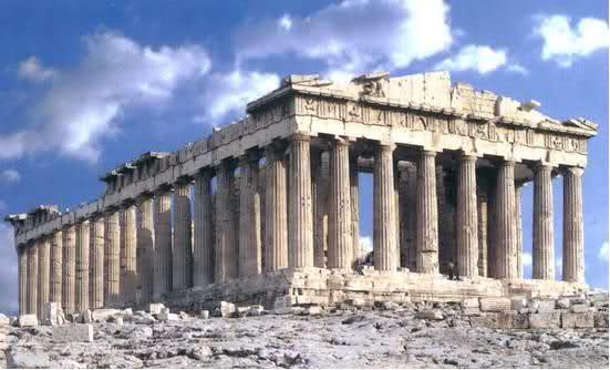 معبد پارتنون، نیایشگاهی در آکروپولیس که پریکلس آن را در سده پنجم پیش از میلاد در یونان امروزی بنا کرد. این معبد، جایگزین نیایشگاه قدیمی‌تری شده بود که در سال۴۸۰ قبل از میلاد توسط خشایارشا پادشاه هخامنشی ایران نابود شده بود.