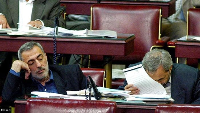البته نماینده ها حقم دارن تو مجلس بخوابن. آخه مثلا میخوان چکار کنن. هر روز وظایفشون از بالا بهشون دیکته میشه. اینا فقط یه مشت عروسک برای خیمه شب بازی جمهوری اسلامی هستند. اگه قرار بود نماینده های بیدار و هشیار باشن که جاجشون به جای مجلس توی زندان بود.