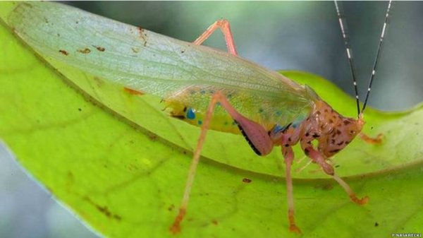 این جیرجیرک های جنگلی رنگ آمیزی خاصی دارند. گروهی از محققان از موسسه "محافظت بین الملل" (Conservation International) این گونه تازه را اخیرا طی یک سفر علمی در جنگل های جنوب غربی سورینام کشف کرده اند.