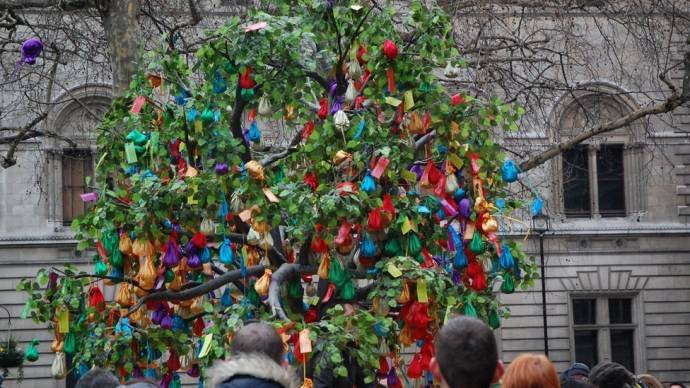 نمونه ای از "درخت آرزو" نیز به این مراسم آورده شده بود. طبق سنتی در هنگ کنگ، مردم با پرتاب کیسه به سمت این درخت، بخت نیک برای سال جدید طلب می کنند. طبق باورهای رایج، اگر کیسه به درخت گیر کند، حاجت شخص برآورده خواهد شد.