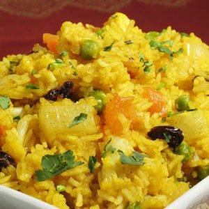 این پلوی مخلوط در کشور هندوستان به بریانی بادام هندی و سبزیجات معروف است و از جمله غذاهای رسمیای است که بهعنوان شام مهمانیها مورد استفاده قرار میگیرد.