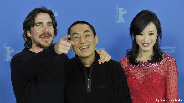 ژانگ ییمو (وسط) کارگردان فیلم "گلهای جنگ" به همراه کریستین بیل و نی نی هنرپیشگان این فیلم.