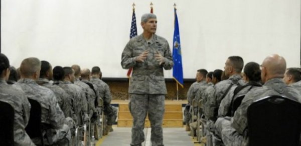 ژنرال نورتن شوارتز، فرمانده نیروی هوایی آمریکا درحال سخنرانی