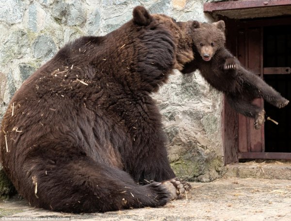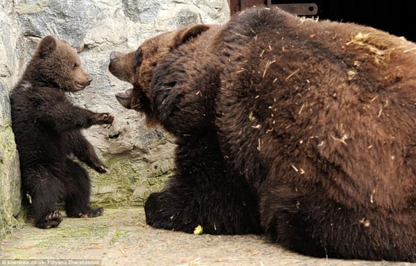 خرس مادر سعی دارد با بی محلی و دور کردن توله خرس او را به خاطر انجام کاری تنبیه کند و توله خرس نیز برای مرتبا به سمت خرس مادر می رود تا در آغوش او قرار گیرد.