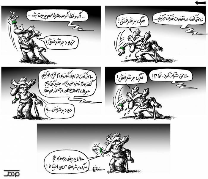 این بیچاره هم دیگه بیکار شده، همش کارتون بی مزه میکشه، جمعش کن دیگه لوس، مثلا مبارزست؟ کار دیگه نداری جز مسخره بازی؟ ۱بار میخندیم، ۲ بار میخندیم، دیگه بی مزهی هم حدی داره