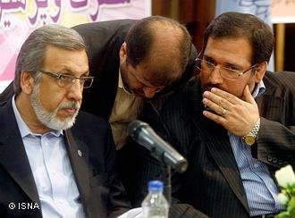 محمودرضا خاوری (سمت چپ) در کنار شمسالدین حسینی، وزیر اقتصاد