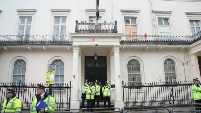 مخالفین سوری از ساعت ۱۱ صبح در پدینگتون پارک حاضر شده بودند و علیه بشار اسد و اعمال خشونت بار حکومت اسد شعار هایی سر می دادند. این گروه تظاهرات خود به سمت سفارت سوریه را در ساعت یک بعد از ظهر آغاز کردند.