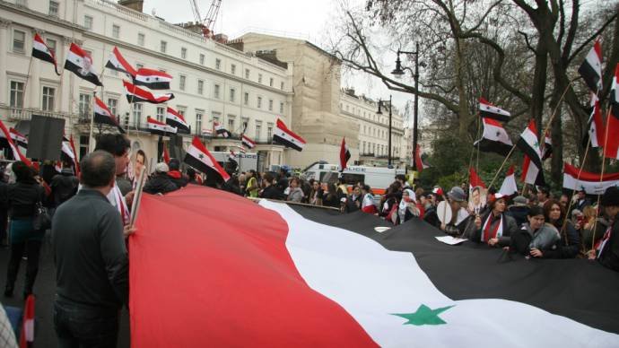 جمعی از سوری های مقیم لندن، امروز بیست و هفتم اسفند ماه (هفدهم مارس) به مناسبت اولین ساگرد قیام مردم سوریه علیه بشار اسد دست به تظاهرات زدند. این تظاهرات با حضور پلیس و در آرامش کامل از محل «پدینگتون پارک» واقع در «اجور روود» یکی از محله های عرب نشین مرکز لندن آغاز شد و در مقابل سفارت سوریه پایان یافت.