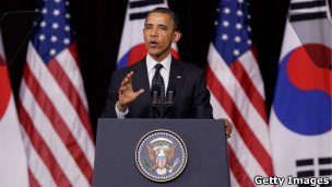 آقای اوباما برای شرکت در کنفرانسی امنیتی به سئول رفته است.