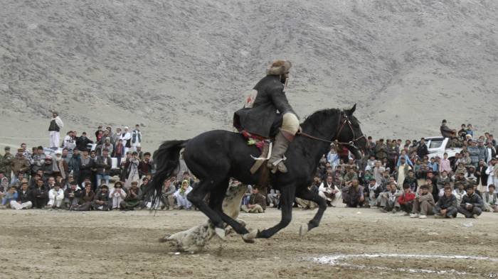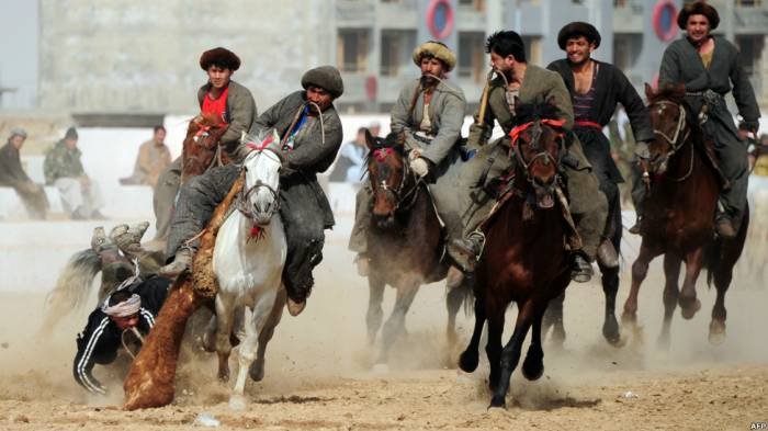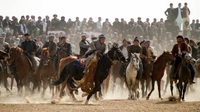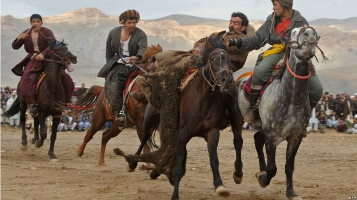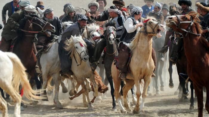 در این بازی خشن، اسب سواران برای به دست آوردن یک بز مرده با هم رقابت می کنند.