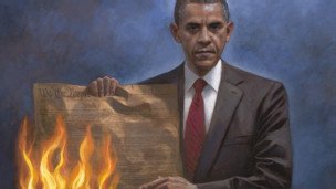 در آخرین تابلوی جان مکناتون، نقاش مقیم ایالت یوتا، باراک اوباما در حال آتش زدن قانون اساسی ایالات متحده دیده میشود.
