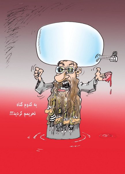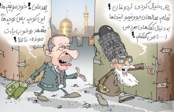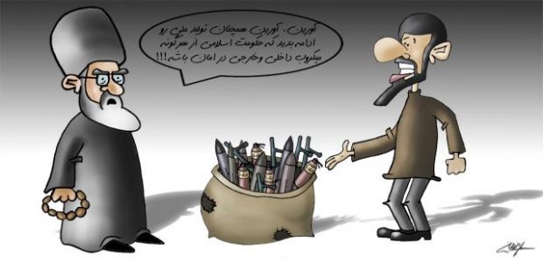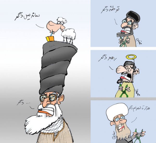 کاسه لیسان و گدایان ساندیس اسلامی خوب توجه کنند کاریکاتورا بسیار عالی است زده به خط وخال رهبر مسلمین تمام عالم ،همون رهبر چلاغ الاغ ...........