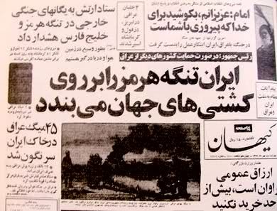 تیتر اول این روزنامه خیلی قابل توجه است: رئیس جمهور(ابوالحسن بنی صدر): ایران تنگه هرمز را بر روی کشتی های جهان می بندد.
