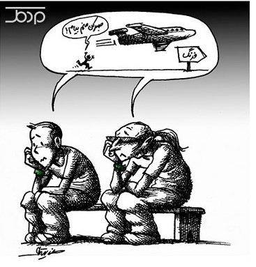 کاریکاتور نویس باید کمی هم بینش سیاسی داشته باشد. با این کاریکاتور خستگی از مبارزه را بین مردم مخالف رژیم اسلامی تلقین میکنید. چرا؟! همهٔ همسایگان ما دشمن ما بوده اند از چند هزار سال پیش چرا میترسید و میترسانید؟! هر کشوری ممکن است از هر جا مثل آمریکا خواهان سود بیشتر باشد اما نترسید چون گلوله ما هم اگر قدیمی است اما یک نفر دشمن را میکشد. اینهایی که در خارج توی سر هم میزنند اصلا جزو اپوزیسیون نیستند بلکه مردم عادی عصبی هستند و اپوزیسیون واقعی دارد به طرز صحیح مبارزه میکند و رژیم مزه تلخش را بیشتر از هر چیزی حسّ میکند. شما در این مورد هم لازم نیست تلقین کنید که مشکل هست. اصلاحات هم در بن بست نیست و اصلاحات اصلی هوشیاری مردم است که دیگر اسلام انگلیسی و نادانی را تحمل نمیکنند.....کاریکاتور شما اصلا نه زیبا است و نه مفهوم خوبی دارد.