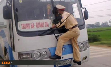راننده این دستگاه اتوبوس در حالی که افسر پلیس از برف پاککن آویزان بود، مسافتی را طی کرد اما سرانجام مجبور به توقف شد.پلیس ویتنام پس از توقف خودرو، راننده را به اتهام سرپیچی از دستور پلیس دستگیر کرد.