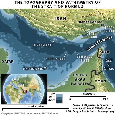 قسمت های پر رنگ در تنگه هرمز و خلیج فارس ، عمیق ترین بخش های این آبها هستند