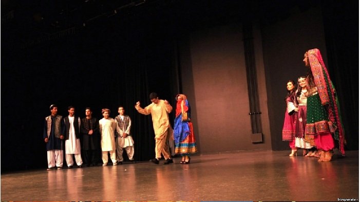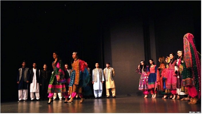 دانشجویان در این نمایش، لباسهای افغانی پوشیده بودند.