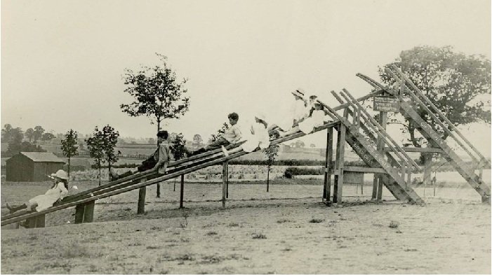 سرسره توسط چارلز ویکستید( نفر ایستاده) اختراع شد که اول آن را برای پارک خودش درست کرده بود ولی سپس تصمیم گرفت سرسره های بیشتری بسازد و به بقیه هم بفروشد. او وسیله های بازی دیگری هم ساخته است.