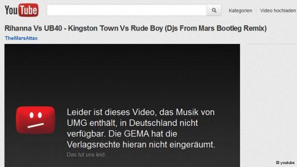 گوگل (مالک یوتیوب) و "گما" (نهاد آلمانی نظارت و ارزشیابی تولیدات موسیقی) از مدتها پیش بر سر پخش آثار موسیقی در اینترنت با یکدیگر دچار اختلاف شده بودند. الکساندر ولف، کارشناس حقوقی "گما" میگوید که تعاریف حقوقی مربوط به امتیاز پخش کلیپهای ویدئویی و سیدیها یکسان هستند. او میگوید که تکثیر یک موزیک-ویدئو در اینترنت یا استفاده رایگان آن از سوی هزاران نفر، نقض آشکار قانون کپیرایت است.