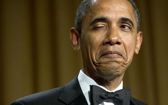 شکلک در آوردن اوباما در جریان مراسم شام رسمی در کاخ سفید