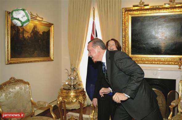 حرکت عجیب اردوغان با توپ در کنار نخست وزیر استرالیا