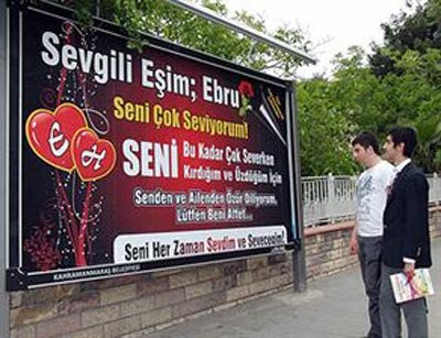 یک مرد در شهر " کاهرامان ماراش " ترکیه با نصب یک بیلبورد بزرگ در شهر از همسرش عذرخواهی کرد.