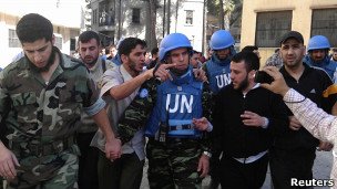 اما ناظران صلح سازمان ملل در سوریه که به تازگی فعالیتهای خود را آغاز کردهاند، از ادامه خشونتها در این کشور خبر داده و گفتهاند که هر دو طرف با نقض تعهدات خود، کماکان به استفاده از سلاحهای سنگین در مناطق مسکونی ادامه میدهند.