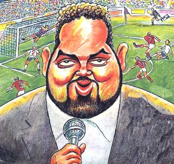 خیابانی تسلط فوق العاده ای روی فوتبال داره و کم از عادل نداره. اما در گزارش زنده افتضاحه. حتی ممکنه باعث باخت تیم هم بشه! همین چند هفته پیش سوت پایان بازی زده شد و تلویزیون تصویر آهسته گل تیم خودمان را نشان میداد که آقا جـــواد که تو باغ نبود و شاید برای قضای حاجت رفته بود بیرون یا رفته بود برای خودش چای بیاره گفت بالاخره اتفاقی که نباید میفتاد افتاد و ما گل خوردیم ...درپایان به اتفاق تمامی همکارانم با شما خداحافظی میکنم. خدا یارو نگهدار شما!!