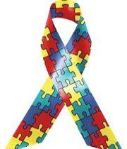 تصویر کناری نماد بیماری اوتیسم است که روبانی با شکل پازل می باشد.
