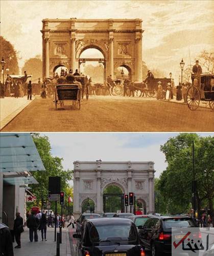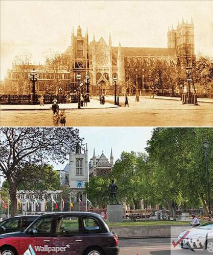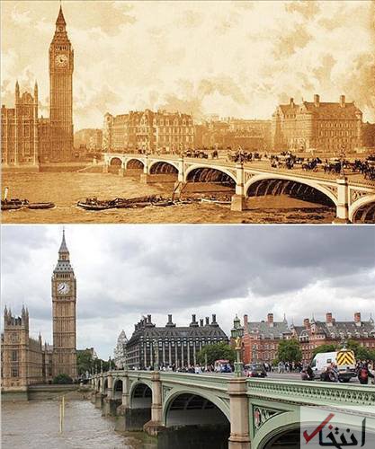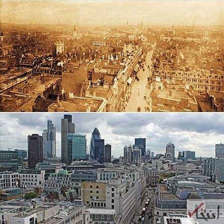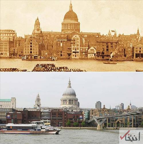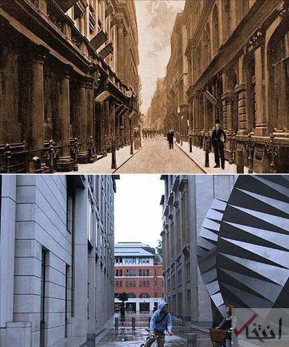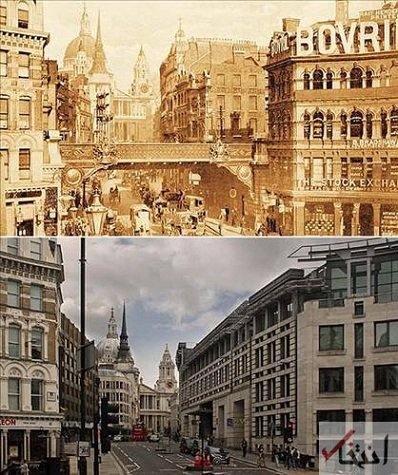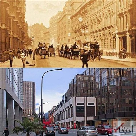 عکسهای گرفته شده در لندن در سال 1897، در مقایسه با حال به نمایش گذاشته شده است که در این تصاویرگرفته شده در همان مکانها و طرح و معماری ها در شهر حفظ شده است