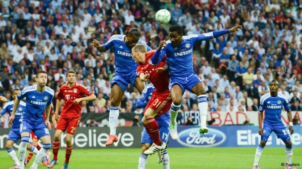 باستیان شوایناشتایگر، هافبک مونیخ، در میان دیدیر دروگبا (چپ) و جان مایکل
