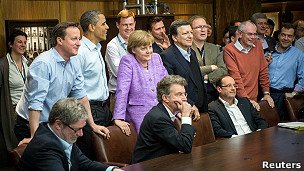 کاخ سفید تصاویری از جلسه سران هشت کشور صنعتی جهان در کمپ دیوید منتشر کرده که در حال تماشای بازی فینال لیگ قهرمانان اروپا هستند و واکنش دیوید کامرون در لحظه قهرمانی چلسی نیز در آنها دیده میشود.