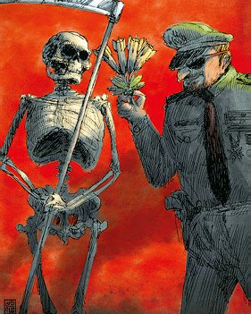 "فکر می‌کنم الان در گوشه و کنار خاورمیانه مثل همیشه جنگ است. شاید عدل همین لحظه جایی در خاورمیانه بمبی منفجر شود. شاید یک نفر را دارند ترور می‌کنند. شاید پدری در همین لحظه با کمربند افتاده به جان بچه‌اش. شاید عروسی است. شاید ختنه‌سوران است. شاید حکومت نظامی است. شاید کسی خودش را از درختی می‌آویزد. شاید پلی را افتتاح می‌کنند که قرار است منفجر شود. شاید سدی را آبگیری می‌کنند که روستایی را سیل ببرد. شاید کسی کتاب‌هایش را دارد جایی چال می‌کند. کسی جفت بچه‌اش را چال می‌کند تا آل نبرد".