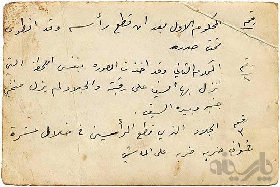 2. عکس درست در لحظهای گرفته شده است که شمشیر جلاد به گردن متهم اصابت کرده است.