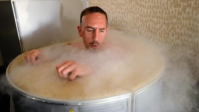فرانک ریبری بازیکن تیم ملی فوتبال فرانسه در داخل مخزن کریوتراپی (سرما درمانی) در شهر کایرچا اوکراین.