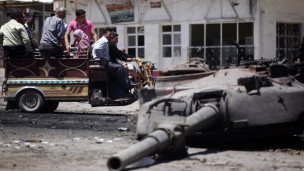 بنا به این گزارش عده ای از کودکان مجبور شده اند که روی تانک های ارتشی سوار شوند تا مخالفان مسلح از حمله به این تانک ها خودداری کنند.